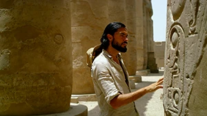 Beautifully curated collection featuring a handsome man traveling among the wonders of Egypt and enjoying tourist activities.